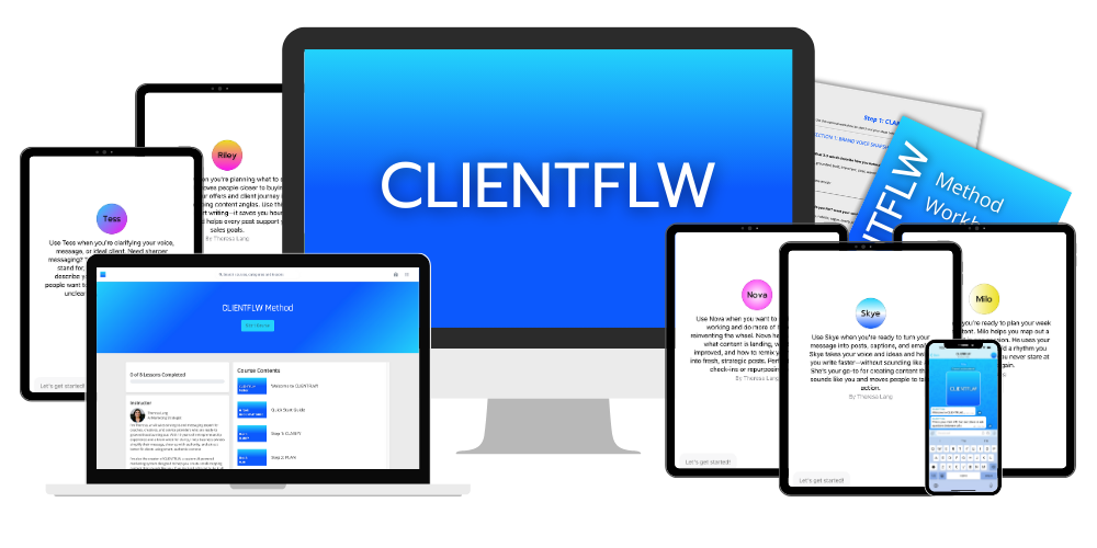 CLIENTFLW organizes your voice and your vision so your brilliance isn’t wasted in half-finished drafts and overthinking loops.